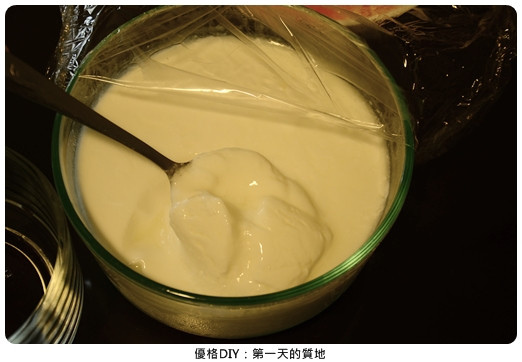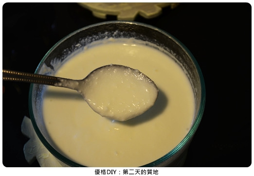 市售優格因為加果膠、寒天等膠質改變口感,第一天質感比較細滑,容易凝固