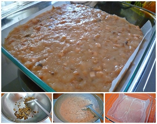 5.因為一時找不到玻璃紙,又怕鹹甜糕整個黏在玻璃皿,我在底部鋪一層烘焙紙,熱的時候很黏剝不下來,放冰箱一晚後輕輕鬆鬆就剝開。