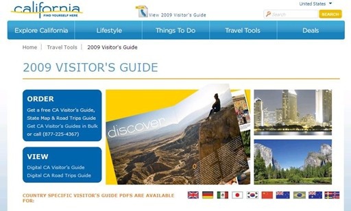 上週收到2009 California visitor's guide很納悶,「咦...我們又沒去Sacramento(加州政府所在地),為什麼州政府會寄遊客手冊來?」後來才知是男主人做的好事,這傢伙幾個月前在網路上閒逛留下通訊方式,沒想到加州政府真的寄來。