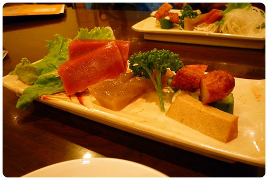 前菜:蒟蒻生魚片,沒有額外添加的葷味,其他小物也很可口,是個美好的開始