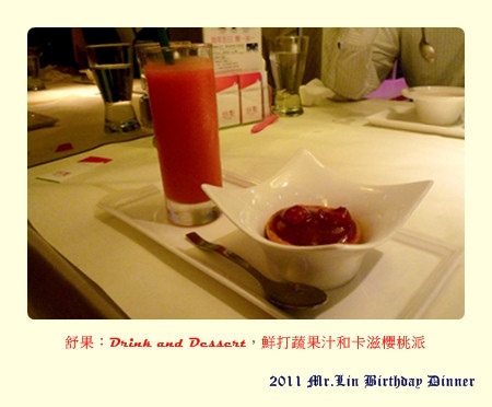 櫻桃醬酸酸甜甜配上派皮,好吃!可能習慣喝自家果汁的濃厚口感,覺得這天果汁有點稀