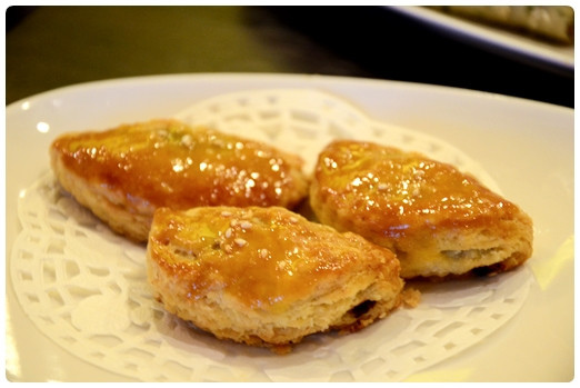 第四道是蜜汁叉燒酥。我超愛叉燒的味道,曾經在素食buffet,吃完三大盤又吃下五個叉燒包,嚇壞同行的江小姐和蔡女士,可是棗子樹的叉燒不夠香讓我有點失望。