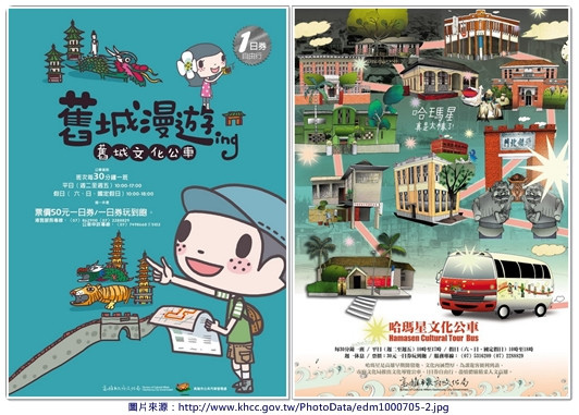 高雄市文化局從100年7月9日開始,推出兩條文化公車路線,一條是舊城文化公車線,另一條是哈瑪星文化公車線。當初煩惱下雨天行程不好安排,想說找一些室內展覽或表演看看也不錯,就上文化局網站,沒想到因此找到不用淋雨又可以遊高雄市區幾個大景點的文化公車,車上還有專人導覽解說講故事,超幸運~